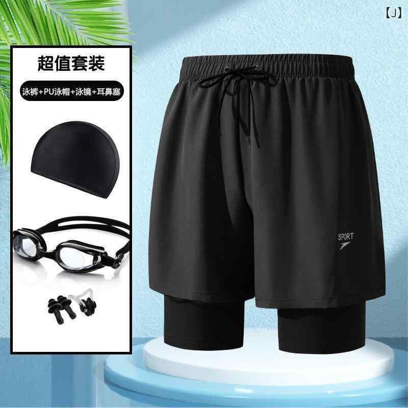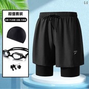 スイムパンツ メンズ 男性 ゆったり ルーズフィット ハーフ丈 五分丈 水陸両用 体型カバー 二重構造 温泉 水泳 大きいサイズ プラスサイズ 伸縮性 ストレッチ素材