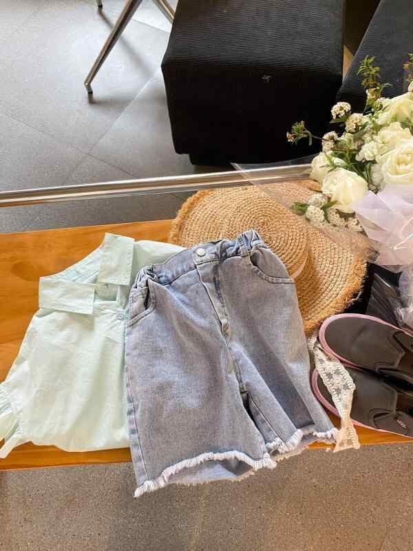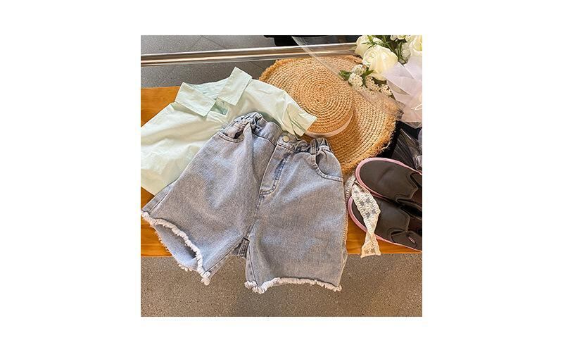 ガールズ ブラウス キッズ ジュニア 韓国ファッション フリル襟 半袖 綿 コットン95% ソフトな肌触り 無地 上品 かわいい おしゃれ 夏物 ミントグリーン トップス