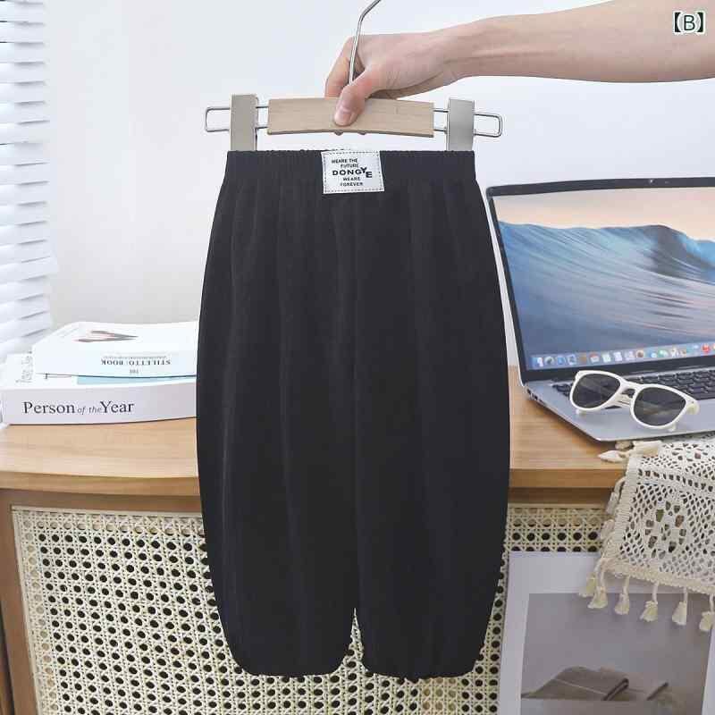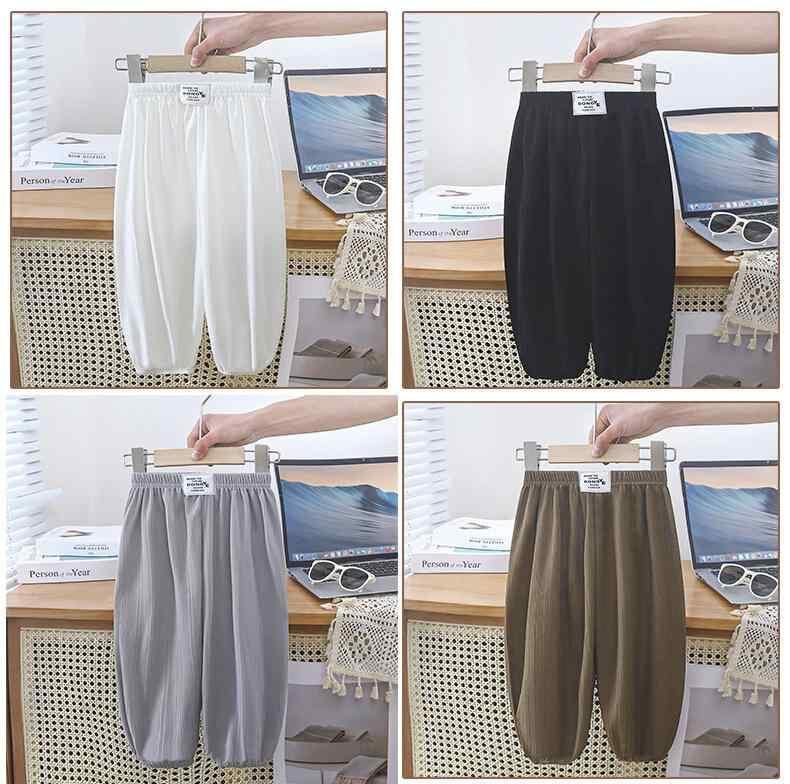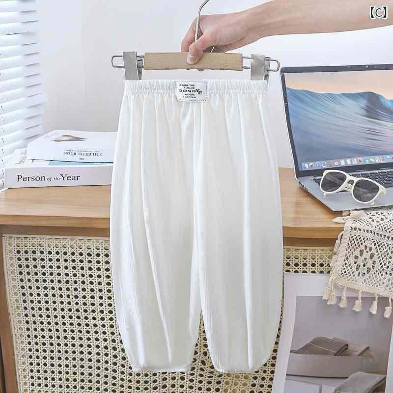 パンツ キッズ ユニセックス 接触冷感 防蚊 薄手 夏 サマー ゆったり バルーンパンツ ジョガーパンツ イージーパンツ ウエストゴム ロング丈 ポリエステル カジュアル 部屋着 普段使い スポーツ 無地