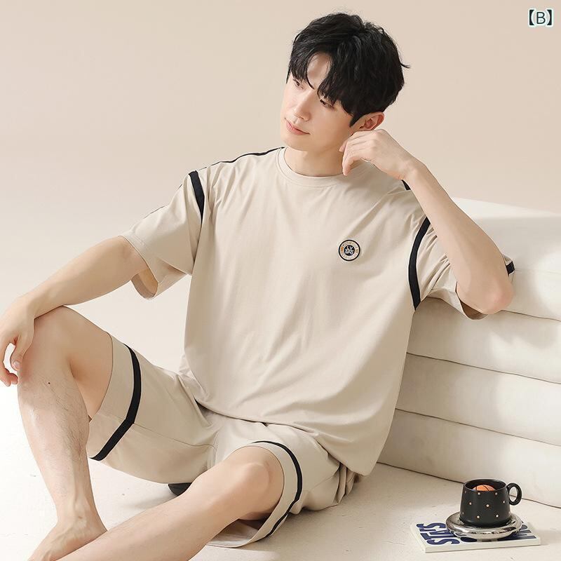 パジャマ メンズ コットン100% 半袖 ショートパンツ 上下セット 夏用 薄手 軽量 高級感 ルームウェア 部屋着 快適 通気性 丸首 シンプル カジュアル