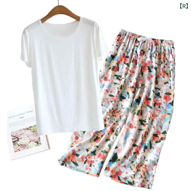 ルームウェア レディース モダール レーヨン カップ付き 半袖 Tシャツ 九分丈 ワイドパンツ 上下セット ゆったり リラックス 接触冷感 薄手 通気性 ストレッチ 快適 パジャマ 部屋着 ワンマイルウェア