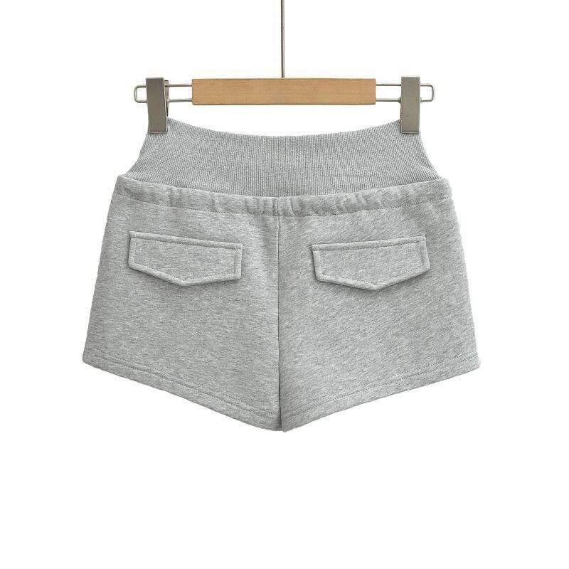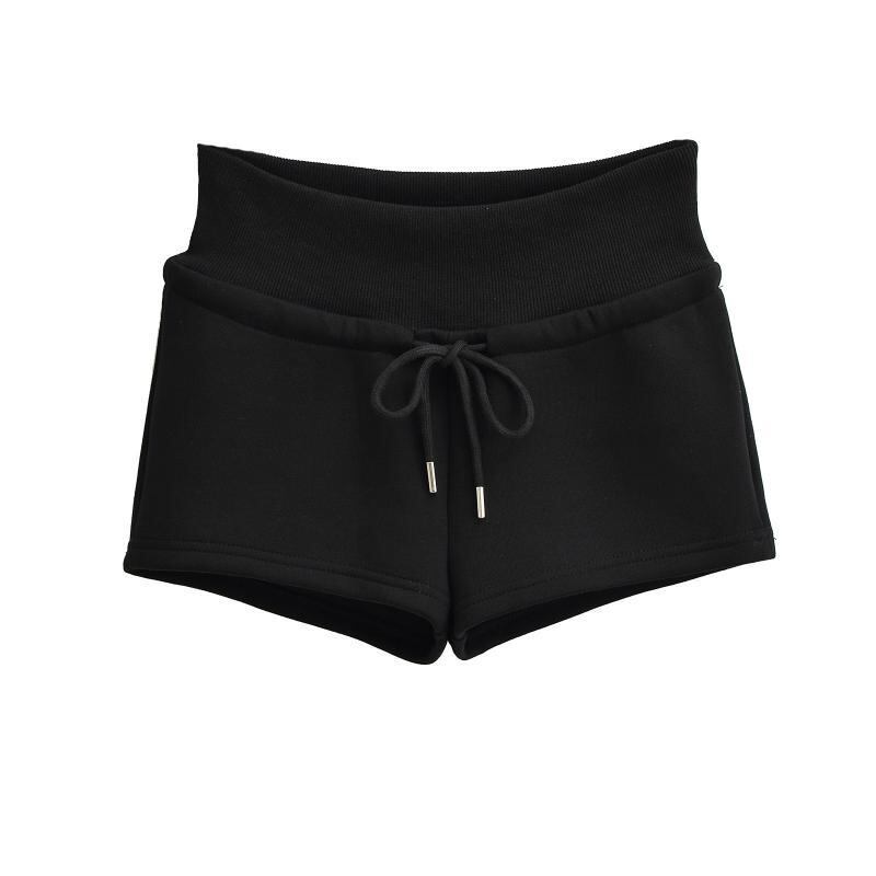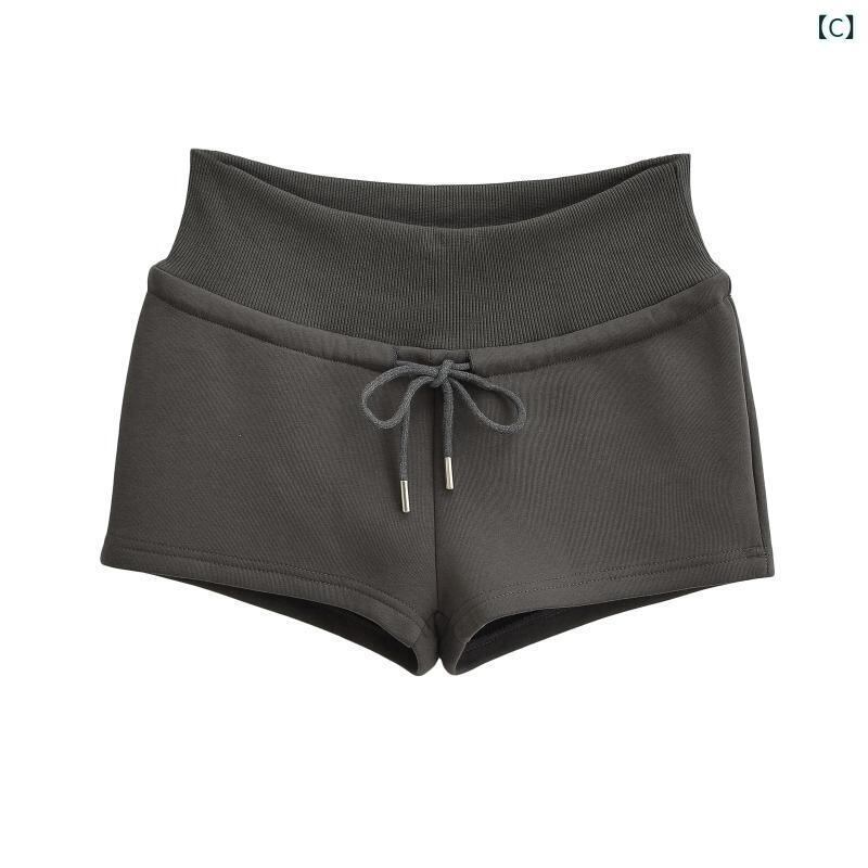 ショートパンツ レディース ローウエスト ドローストリング スポーツ アクティブ 短パン ゆったり ルーズ ストレート カジュアル ホットパンツ ルームウェア 部屋着 普段使い 綿混 コットンブレンド 伸縮性 ストレッチ ブラック グレー