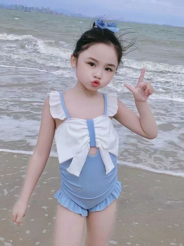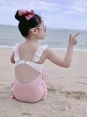 ワンピース キッズ 女の子 水着 かわいい 夏 プール 海水浴 再生繊維 ポリエステル 高伸縮性 バックオープン ストライプ バイカラー シンプル パッドなし