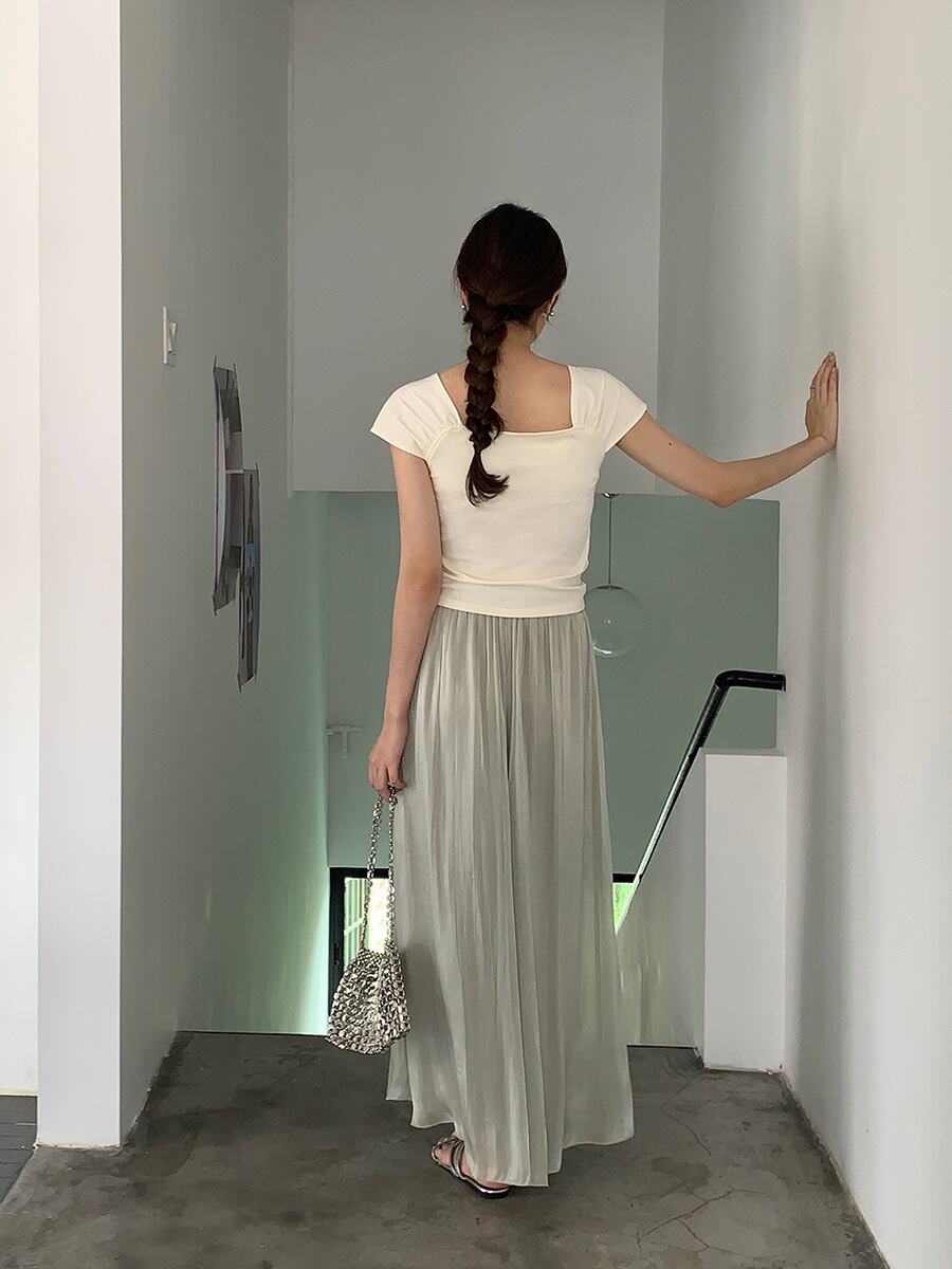 ・カテゴリ: カジュアルパンツ・スタイル: 日韓カジュアル・主な素材: ポリエステル95%以上・パンツシルエット: ワイドレッグ・丈: フルレングス・ウエスト: ハイウエスト・厚さ: 中厚・カラー展開: アプリコット、グリーン、スカイブルー、ブラック・サイズ: ワンサイズ(目安:40-65kg)・テイスト: 快適カジュアル・対象: レディース・加工: 高温定型