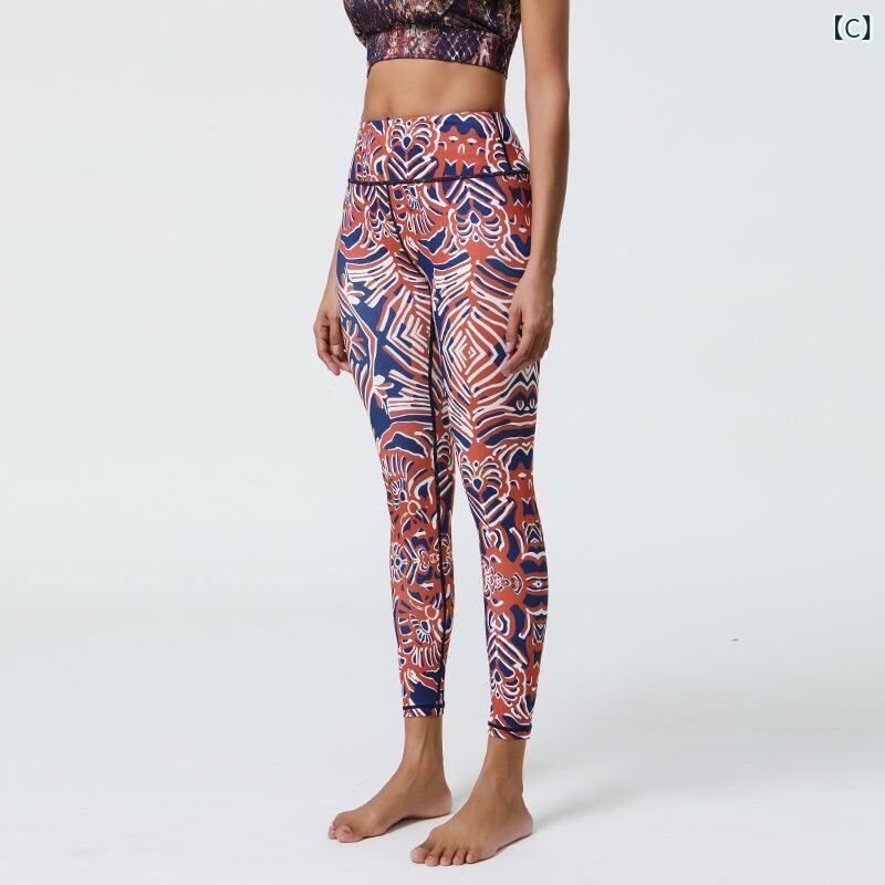 ヨガパンツ レディース レギンス スパッツ 素肌感覚 ストレッチ 薄手 軽量 プリント柄 スポーツ フィットネス ジム トレーニング ランニング 高伸縮性 通気性 吸湿速乾 ポリエステル スパンデックス混 スキニー タイト 九分丈 アンクル丈