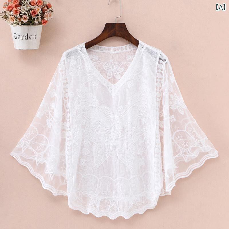 ・主な素材: 綿70%〜80%・性別: レディース・スタイル: レトロ、エスニック、エレガント・デザイン: 刺繍、メッシュ、パッチワーク、ダメージ加工・シルエット: レギュラー・ネックライン: Vネック・袖丈: 七分袖・袖タイプ: フリル袖・着用方法: プルオーバー・カラー展開: ホワイト、ブラック・サイズ展開: ワンサイズ