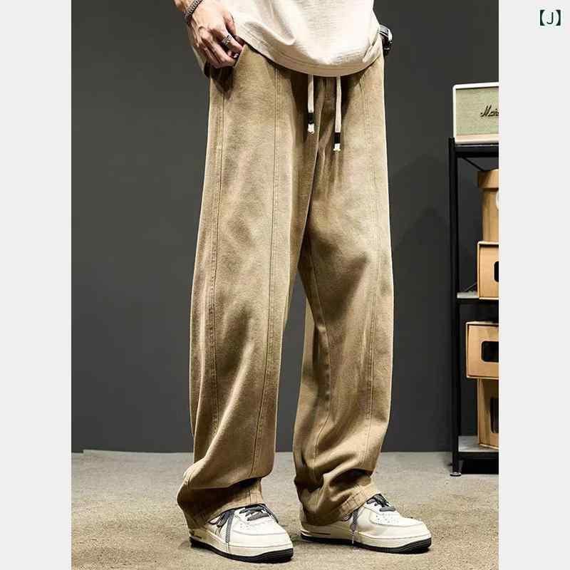 デニム ショートパンツ メンズ カジュアル ストリート 韓国ファッション アメリカンヴィンテージ ウエストゴム ドローストリング 綿素材 微ストレッチ ストレートシルエット 五分丈 マルチポケット 夏 普段使い 部屋着