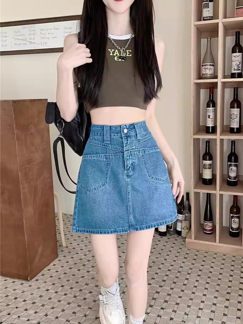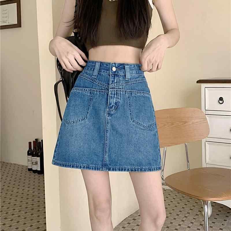 スカート レディース 大きいサイズ プラスサイズ ストレッチ デニム ショート丈 ミニスカート Aライン ハイウエスト 体型カバー ウォッシュ加工 インナーパンツ付き 綿混紡 ブラック カーキ ライトブルー