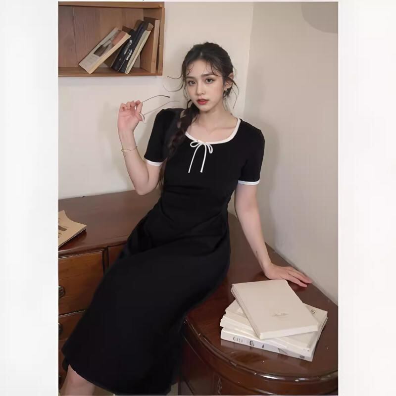 ・主な素材: 綿55%、ポリエステル37%、ポリウレタン8%・柄: 無地・デザイン: バイカラー・加工: パッチワーク、切り替え・カラー展開: ブラック・サイズ展開: XL(参考体重60-77.5kg)、2XL(参考体重77.5-90kg)、3XL(参考体重90-102.5kg)、4XL(参考体重102.5-120kg)・スタイル: きれいめ通勤・スカートタイプ: Aライン・ネックライン: ラウンドネック・スカート丈: ロング・袖タイプ: レギュラー・袖丈: 五分袖・性別: 女性