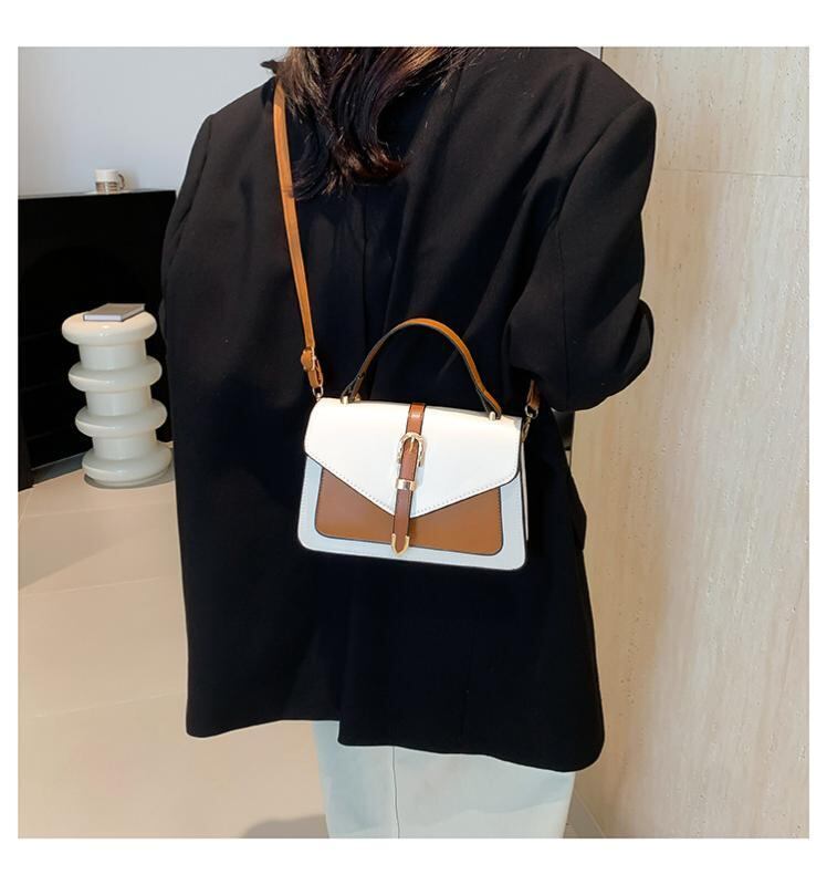 バッグ レディース スクエア ショルダーバッグ ハンドバッグ 斜め掛け PUレザー 合成皮革 おしゃれ トレンド ミニバッグ 夏用 フラップ開閉 ロック金具 配色デザイン デイリーユース ブラウン オレンジ ブルー グリーンカラー