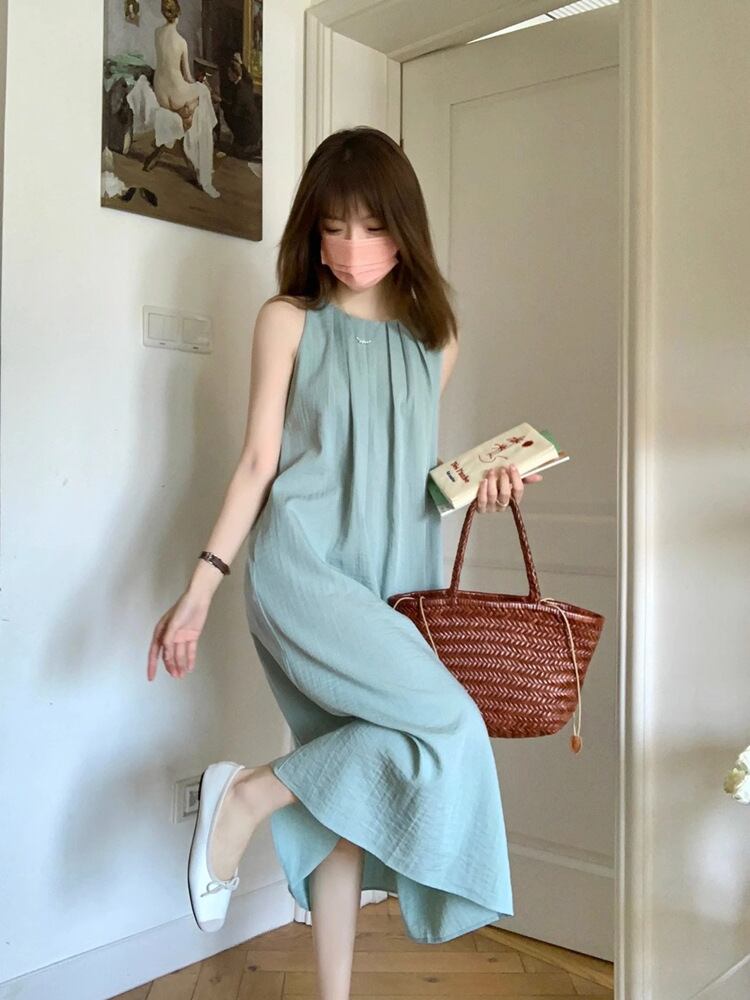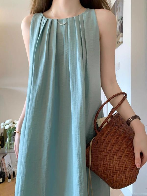 ・カテゴリ: ワンピース ・スタイル: エレガント通勤 ・主な素材: ポリエステル ・素材混率: ポリエステル50%以上70%未満 ・ネックライン: クルーネック ・袖丈: ノースリーブ ・丈: ミディ丈 ・シルエット: Aライン ・カラー: ダスティグリーン ・サイズ展開: M、L、XL、XXL