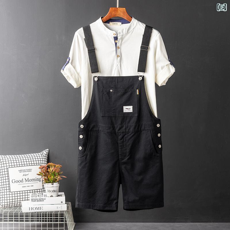オーバーオール メンズ ショート丈 アメカジ ワークウェア ゆったり ルーズフィット コットン サロペット ストレートシルエット カジュアル 普段使い カーキ ブラック ネイビー
