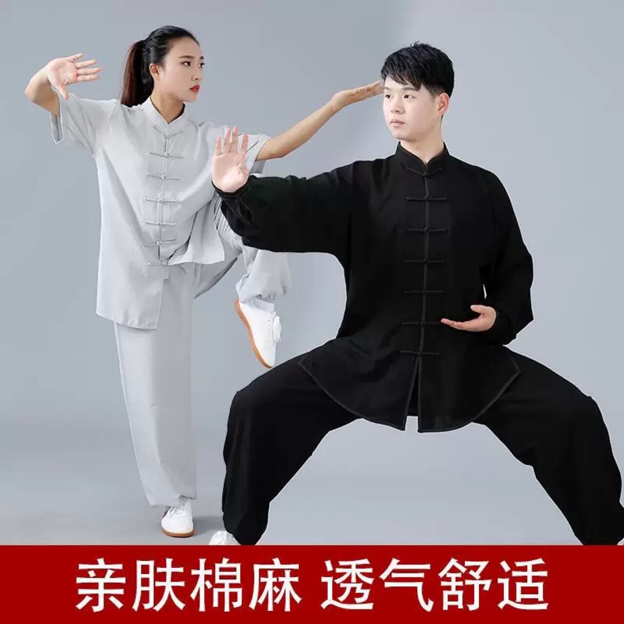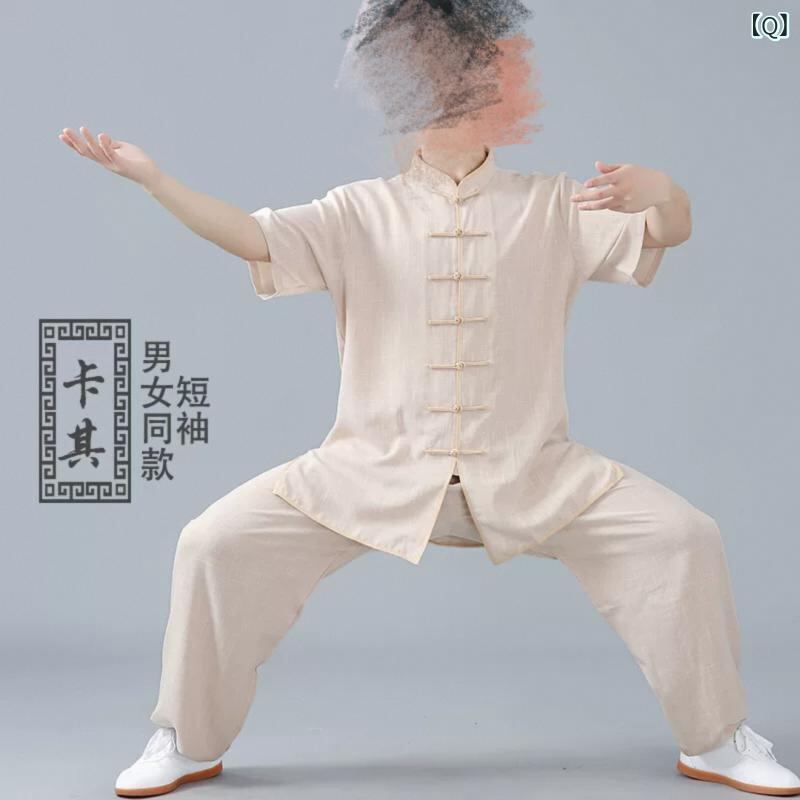 太極拳服 男女兼用 キッズ 春夏用 綿麻 半袖 武術服 練習着 演武 発表会 団体 チーム 上下セット