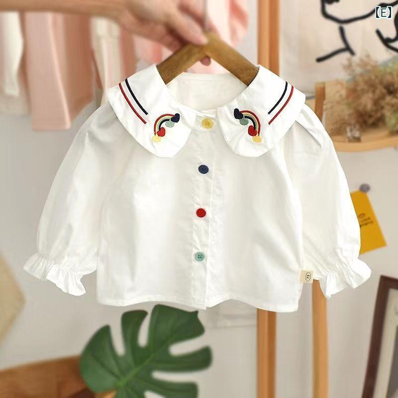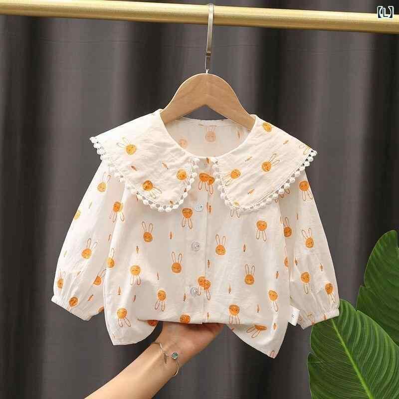 シャツ 女の子 キッズ ジュニア 襟付き 長袖 綿 コットン ブラウス 白 ホワイト トップス カジュアル 春秋 上品 おしゃれ 普段使い 通学 お出かけ着