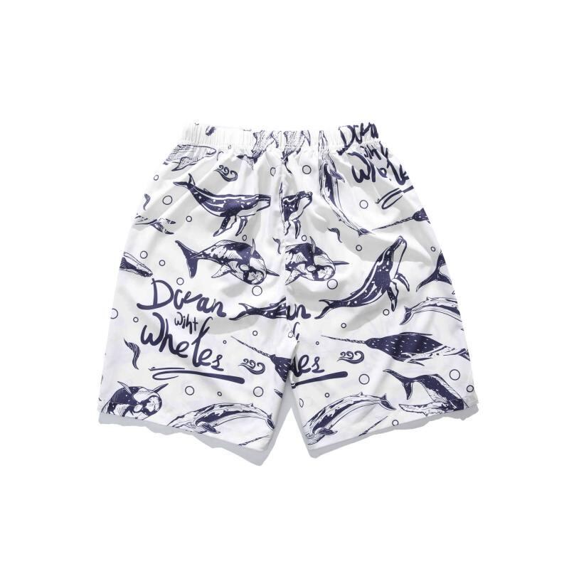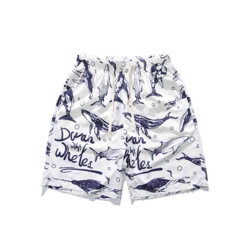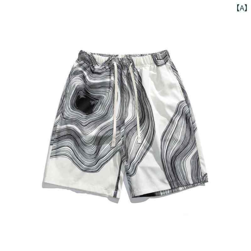 ショートパンツ メンズ 夏 薄手 ドローストリング 接触冷感 吸湿速乾 ポリエステル プリント柄 ルーズフィット カジュアルスタイル 普段使い