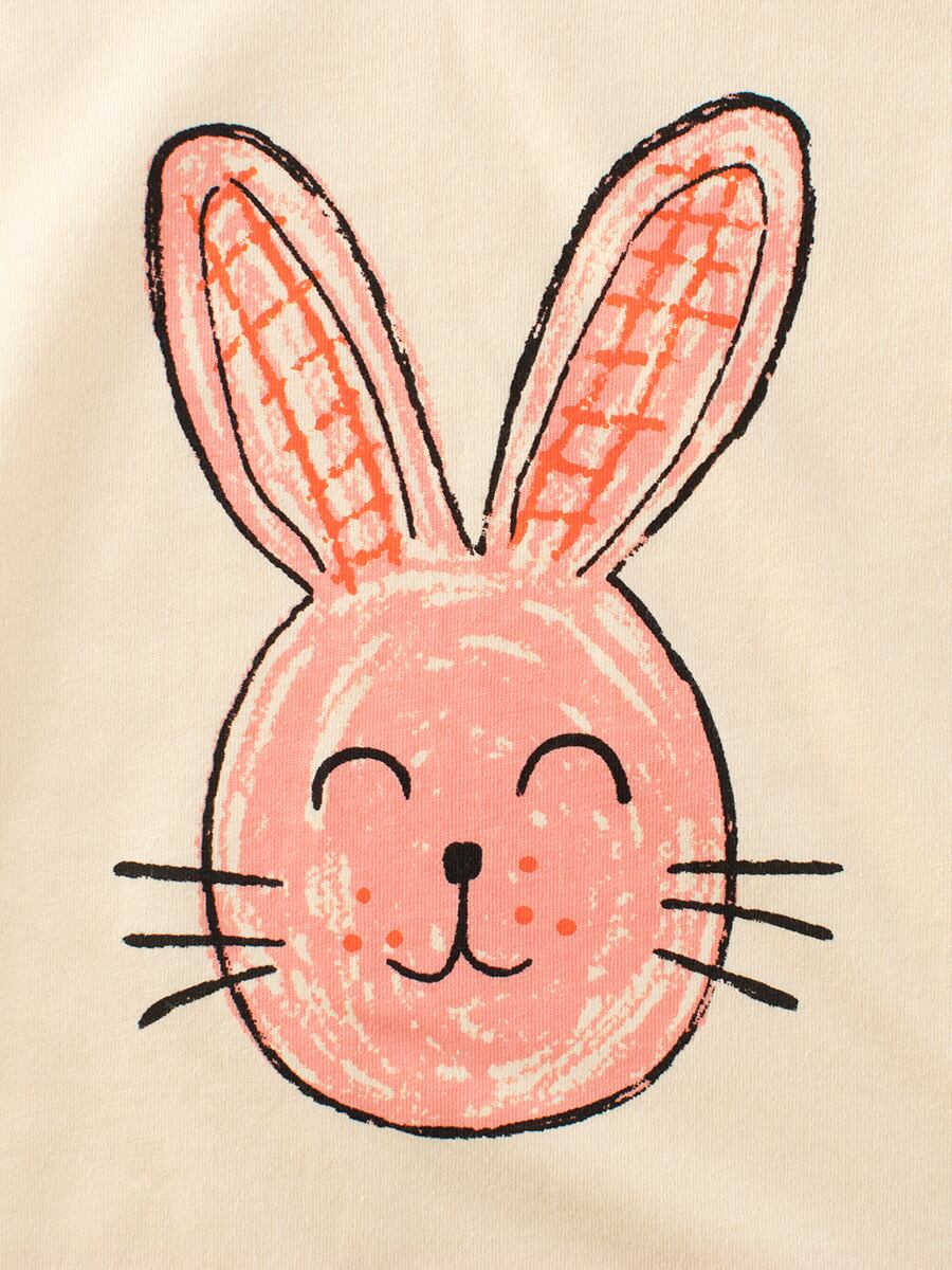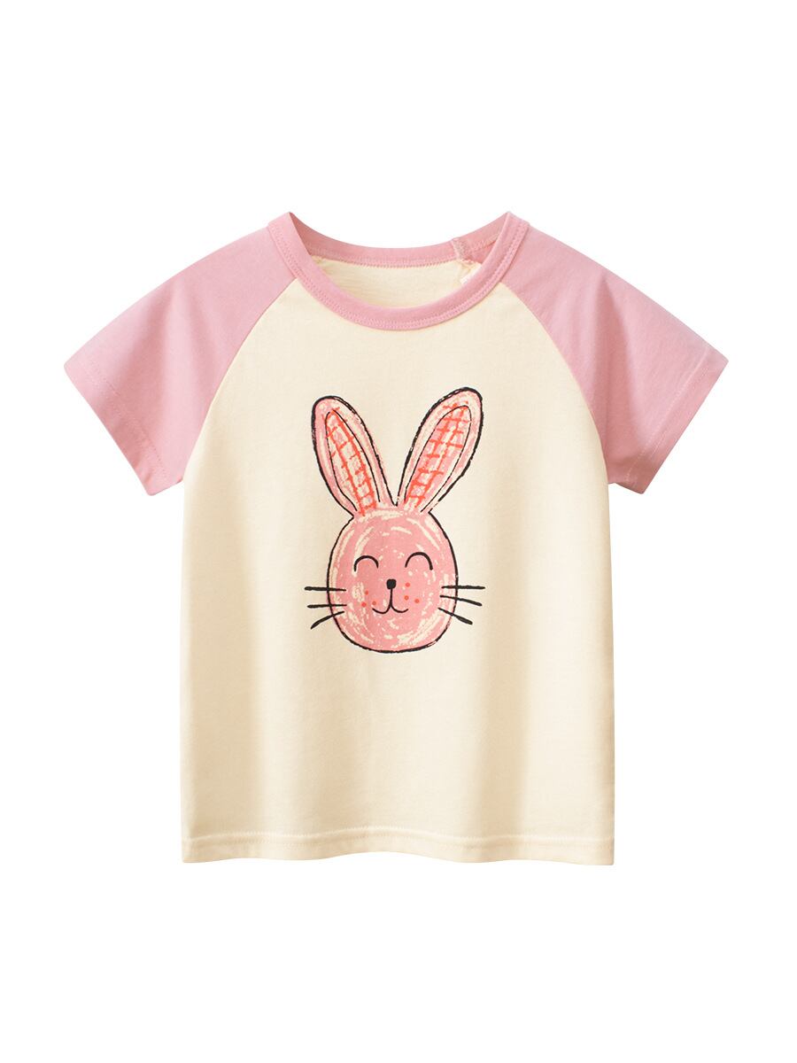 Tシャツ 女の子 キッズ 子供服 半袖 トップス 韓国風 カートゥーン うさぎ ラビット キャラクター プリント 綿100% 丸首 クルーネック 柔らかい肌触り 夏 サマー 普段使い 通園 通学 お出かけ ベージュ ピンク