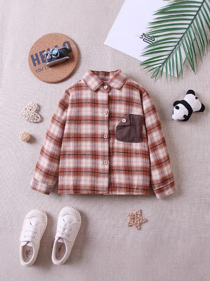 シャツ キッズ ベビー 男女兼用 男の子 女の子 春 秋 薄手 レトロ ヴィンテージ 配色 バイカラー チェック柄 長袖 カジュアル 表面起毛 綿 コットン ブラウス