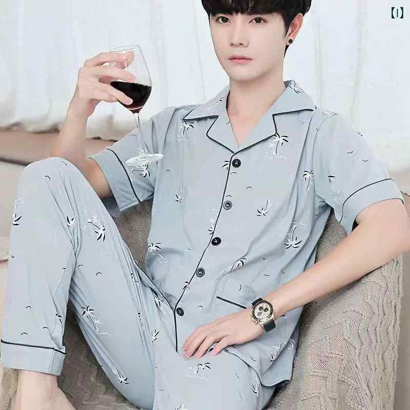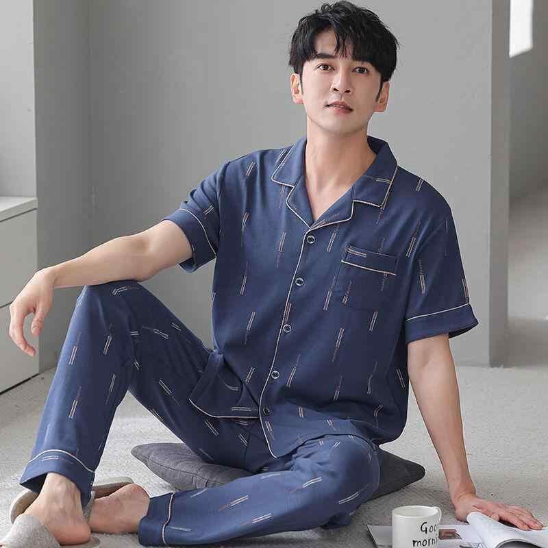 パジャマ メンズ 男性用 綿 コットン 半袖 長ズボン ロングパンツ 薄手 春夏秋 ルームウェア 部屋着 セットアップ 襟付き シンプル カジュアル 外出OK