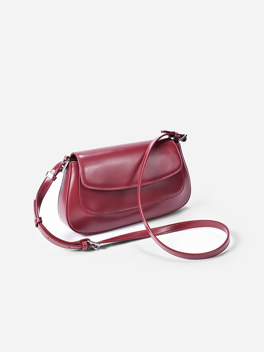 バッグ レディース 本革 牛革 ショルダーバッグ 斜めがけ ワンショルダー バゲットバッグ 横型 スクエア 高級感 オシャレ 万能 やや柔らかめ 日常使い 普段使い 通勤 お出かけ レトロ クラシック コーヒー ワインレッド ブラック