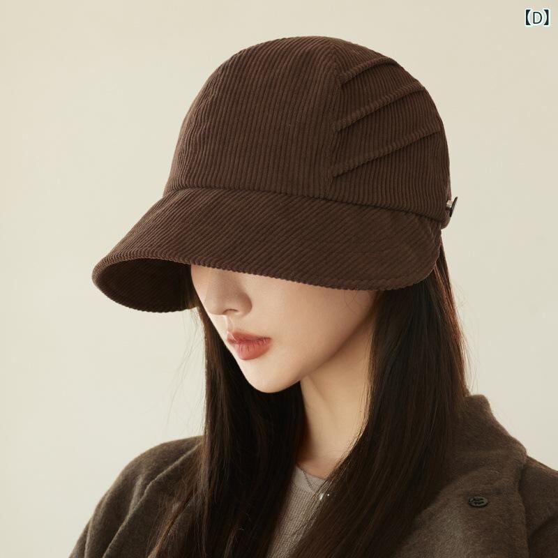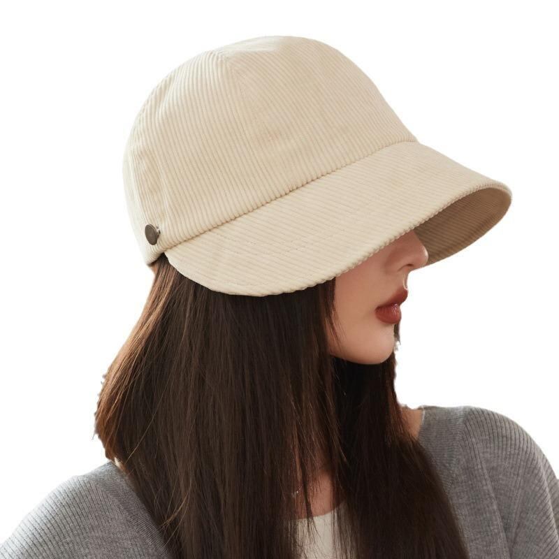 バケットハット 韓国風 乗馬風 フェミニン カジュアル 高品質 プリーツ加工 コーデュロイ 秋 冬 春 UVカット 日よけ 防風 保温 ポリエステル製 ベージュ ブラック カーキ ブラウン ラウンドトップ ショートブリム デザイン