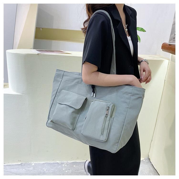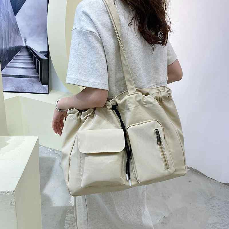 バッグ レディース 大容量 トートバッグ ショルダーバッグ 斜め掛け 鞄 通勤 オフィス デイリーユース 普段使い ショッピング カジュアル シンプル 横型 スクエア型 ソフト ドローストリング 巾着開閉 ブラック グリーン イエロー