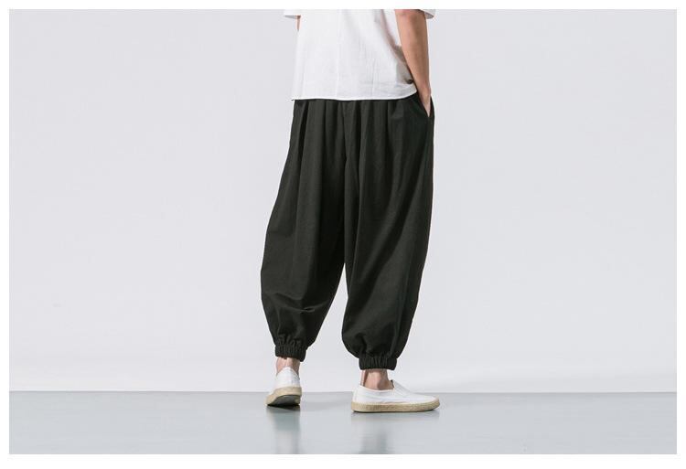 カジュアルパンツ メンズ 麻 綿麻 くるぶし丈 ゆったり ワイド テーパード ジョガー 大きいサイズ 体型カバー 通気性 快適 イージーパンツ 普段使い ブラック カーキ ブラウン