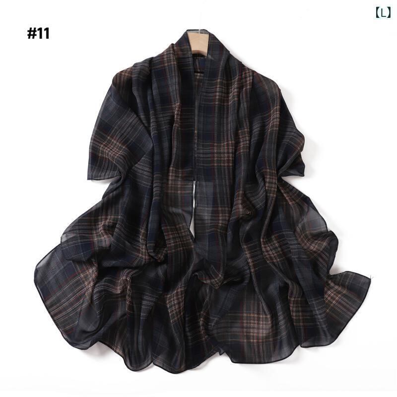 ストール レディース チェック柄 プリント パールシフォン 大判 UVカット 紫外線対策 保温 防塵 日焼け対策 エレガント 上品 高級感 オフィス カジュアル 普段使い 通勤 冷房対策