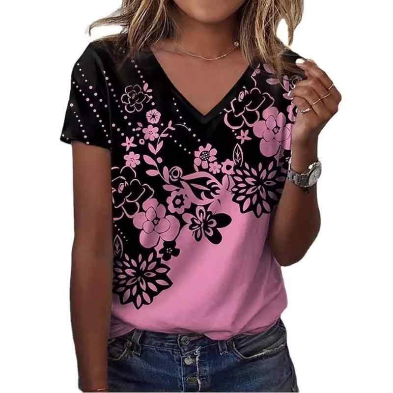 ・カテゴリ: Tシャツ ・タイプ: プルオーバー ・主な素材: ポリエステル (混紡率30~50%)、スパンデックス ・柄: 植物花柄 ・袖丈: 半袖 ・加工: プリント ・フィット: ルーズ ・着丈: 標準丈 (約50~65cm) ・ネックライン: Vネック ・袖タイプ: レギュラー ・デザイン要素: 3D立体柄 ・サイズ展開: S, M, L, XL, 2XL, 3XL, 4XL, 5XL ・スタイル: スウィート、ナチュラル