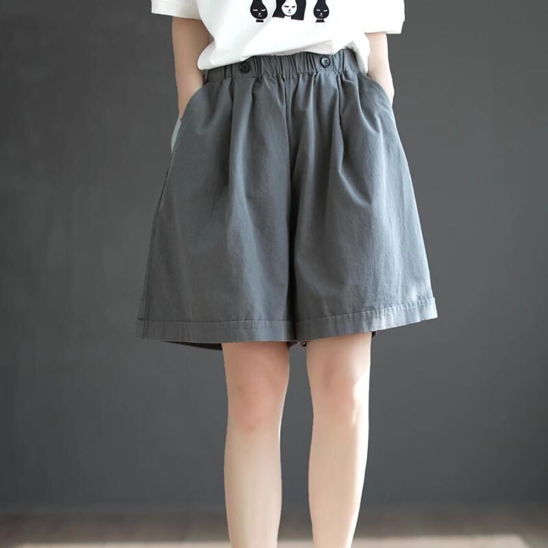 ハーフパンツ レディース 綿 コットン ゆったり 大きいサイズ 夏 レトロ 無地 ワイド カーゴパンツ ウエストゴム ハイウエスト ポケット付き 着回し きれいめ カジュアル