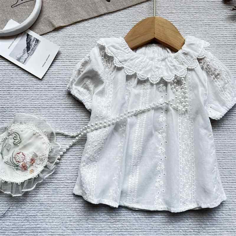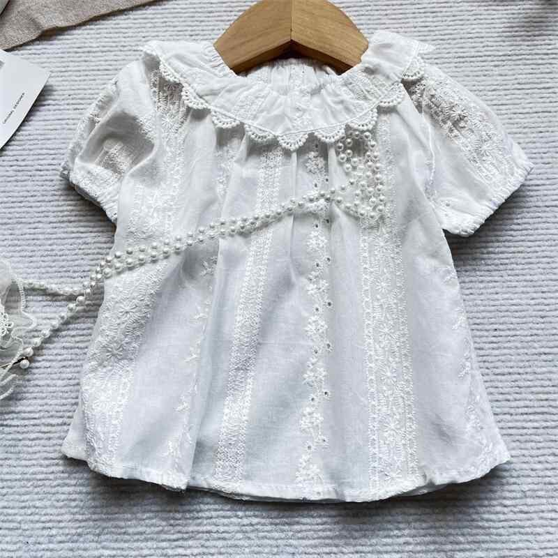 ブラウス 女の子 ベビー レース フリル襟 半袖 薄手 シャツ トップス 綿 コットン 無地 夏物 普段使い カジュアル 赤ちゃん服 幼児服 ガールズ 丸襟 ホワイト