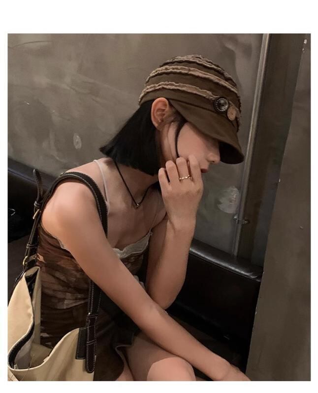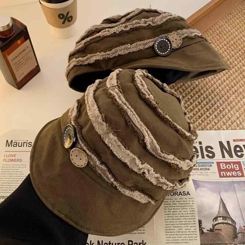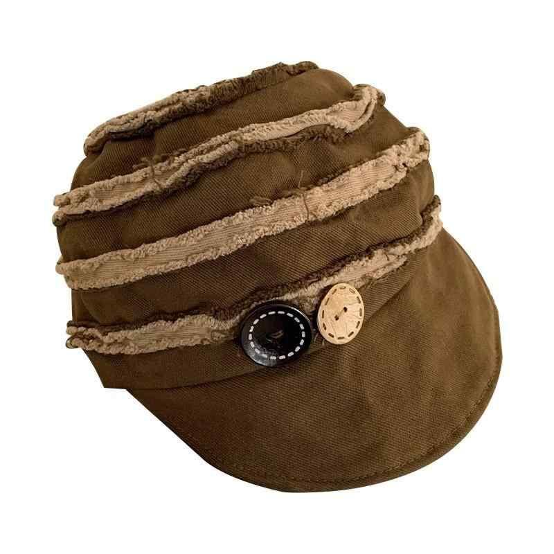 バケットハット レディース レトロ ヒッピー フリンジ パッチワーク 切り替え ボタン プリーツ 小顔効果 ストリート ソフトトップ Y2K 秋冬 ブラウン ポリエステル 通気性 保温 日よけ 韓国風 かわいい フェミニン