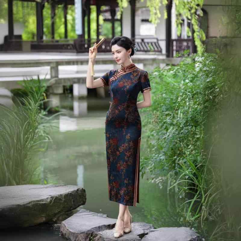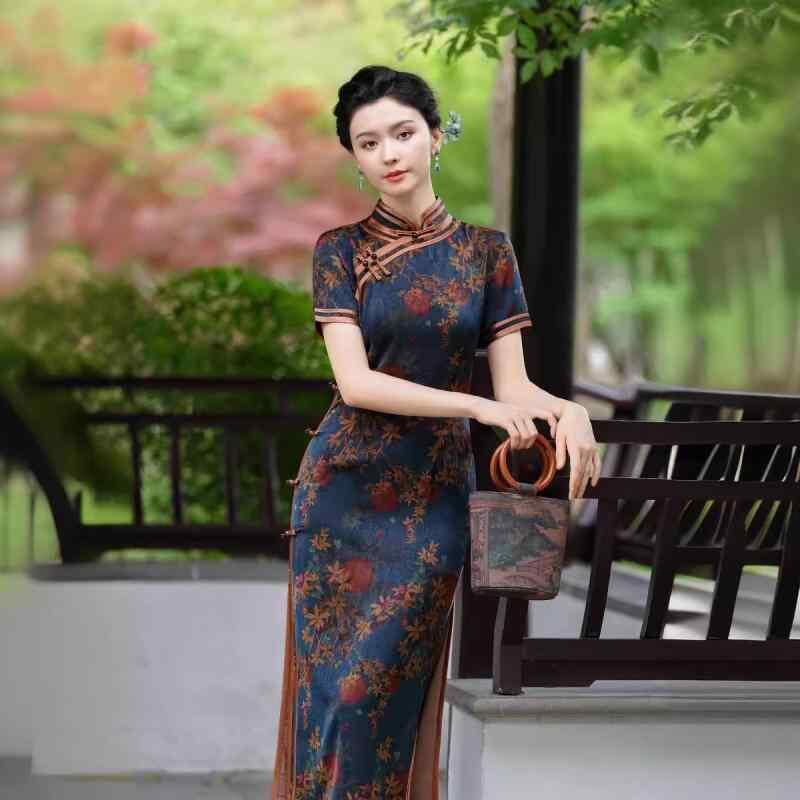 ・カテゴリ: チャイナドレス・主な素材: 酢酸繊維95%以上・丈: ロング丈・ネックライン: スタンドカラー・袖丈: 半袖・スリット: ロータイプ・スタイル: 中国風レトロ・サイズ展開: M、L、XL、2XL、3XL、4XL、5XL