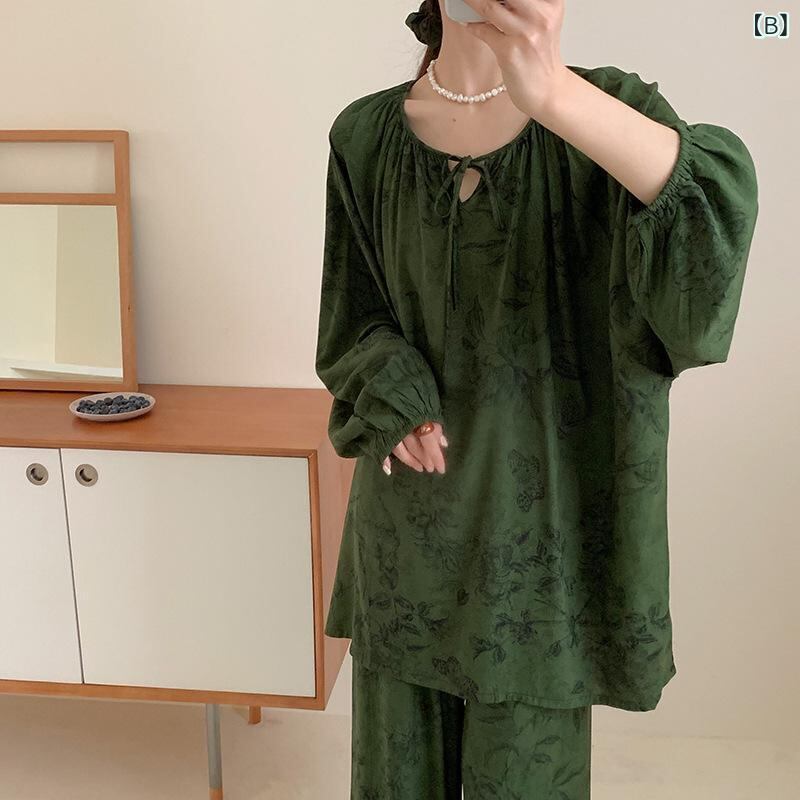 ルームウェア レディース 大きいサイズ ゆったり パジャマ 再生繊維 レーヨン 薄手 セットアップ ラウンドネック 長袖 通年 快適 部屋着 寝巻き リラックス ソフトな肌触り 吸湿性 通気性
