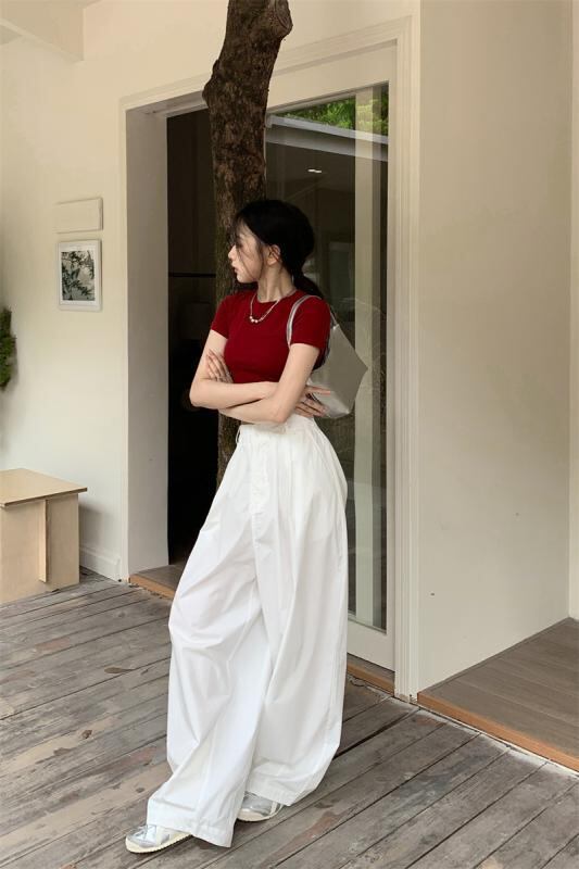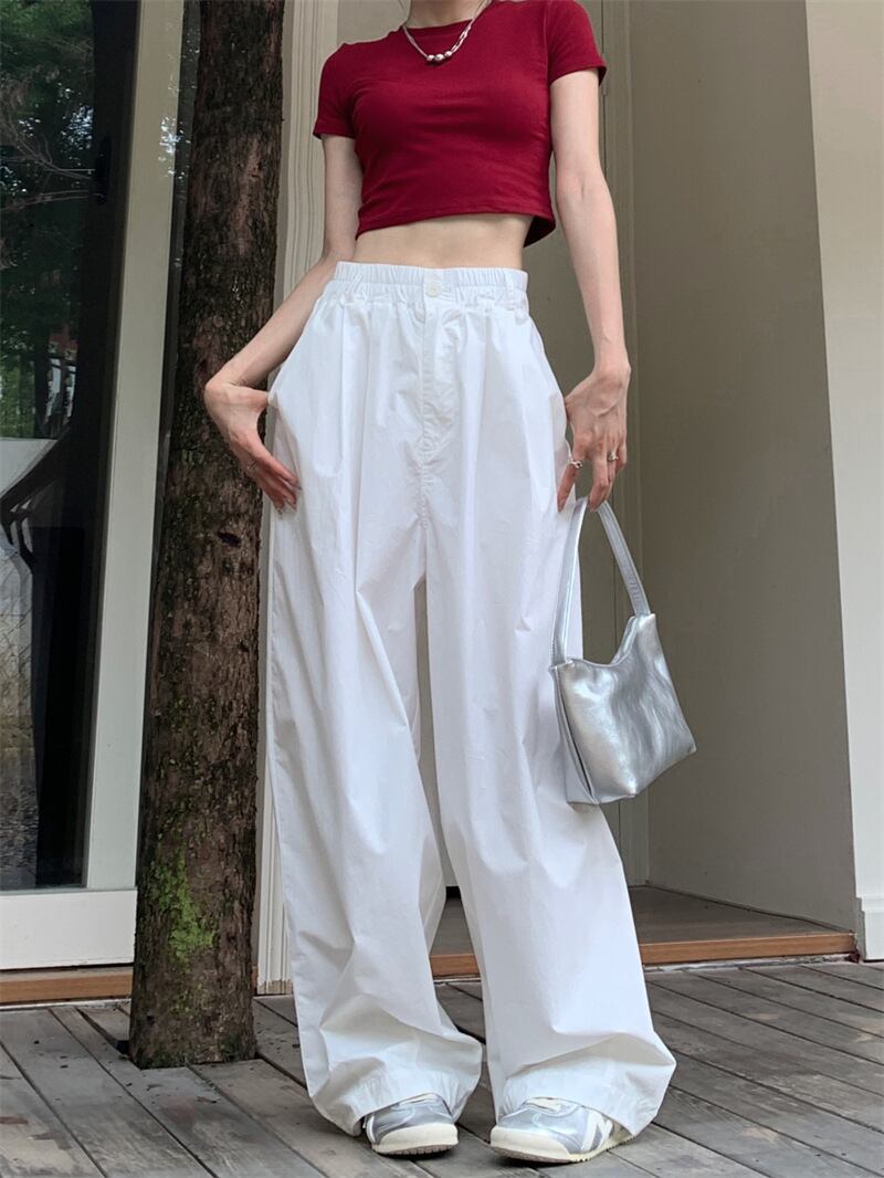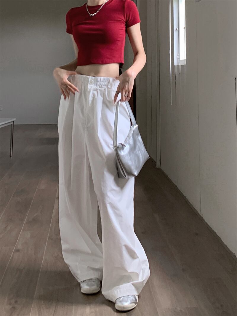パンツ レディース 白 ウォッシュドコットン 薄手 ストレッチ ワイド ストレート スラックス ゆったり ルーズ 落ち感 ドレープ フルレングス ロング丈 高級感 着回し 通勤 オフィス きれいめ カジュアル
