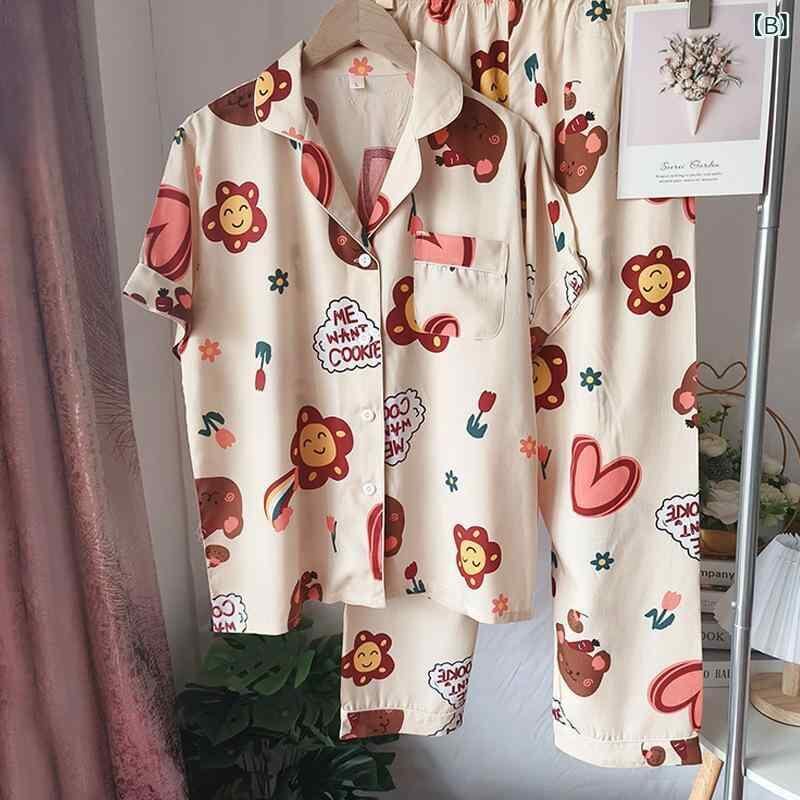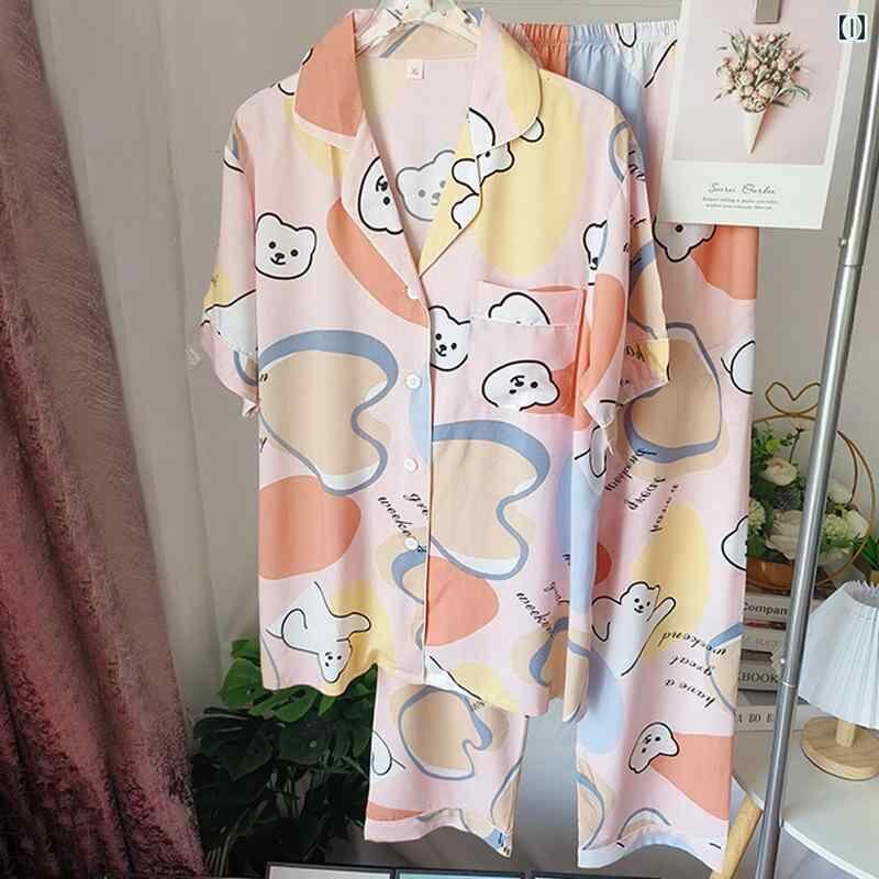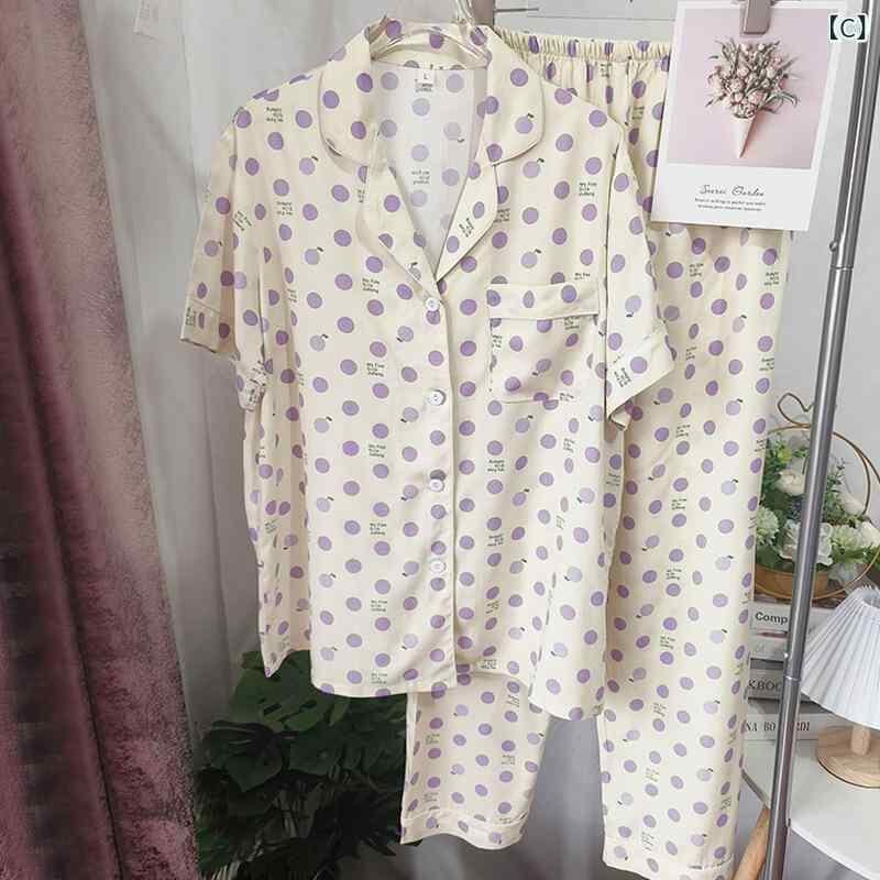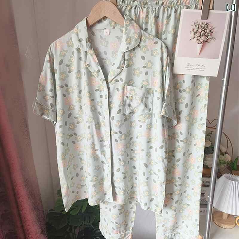 ルームウェア レディース 女性用 再生繊維 ポリエステル 上下セット パジャマ 半袖 開襟シャツ ロングパンツ 小花柄 花柄 薄手 軽量 涼しい 接触冷感 快適 通気性 伸縮性 ワンマイルウェア 部屋着 大きいサイズ ゆったり 高級感