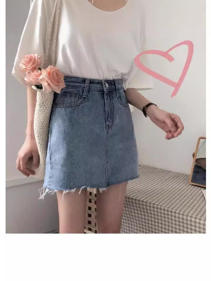 スカート レディース 大きいサイズ 韓国風 デニム Aライン ミニ丈 ハイウエスト キュロットスカート ポケット付き ストレッチ 無地 ブルー ポリエステル素材 型崩れしにくい