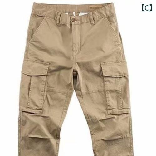 カーゴパンツ メンズ 韓国風 ゆったり ストレート カジュアル ワークパンツ 夏物 作業着 シンプル 多ポケット 綿混 コットンツイル ミドルウエスト 9分丈 無地 レジャー グレー ブラック カーキ