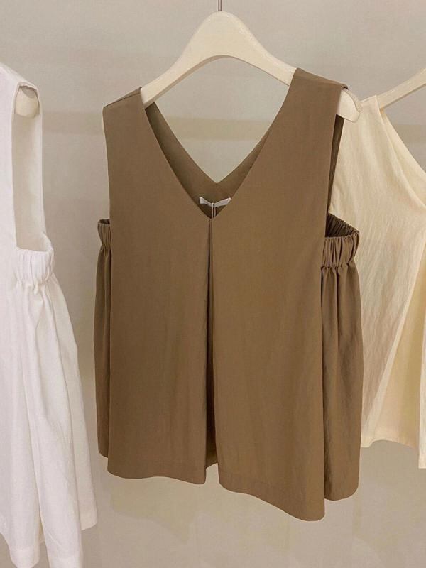トップス レディース 大きいサイズ Vネック ノースリーブ ベスト ゆったり カジュアル ファッション シンプル 通勤 着回し ポリエステル スパンデックス 無地 快適 リラックス レギュラー丈 塩系