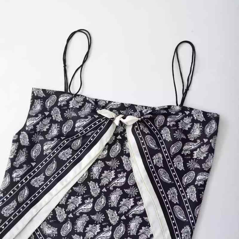 キャミソール レディース ホルターネック プリント柄 ショート丈 クロップド丈 スリムフィット 着痩せ効果 バックオープン 紐付き セクシー リゾートスタイル ブラック ポリエステル トップス