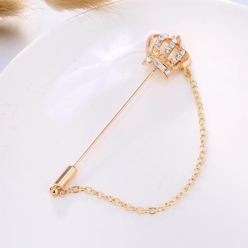 ブローチ レディース メンズ スーツ ラペルピン 王冠 クラウンモチーフ 一文字 ロングピン 上品 エレガント 韓国ファッション フォーマル カジュアル 合金製