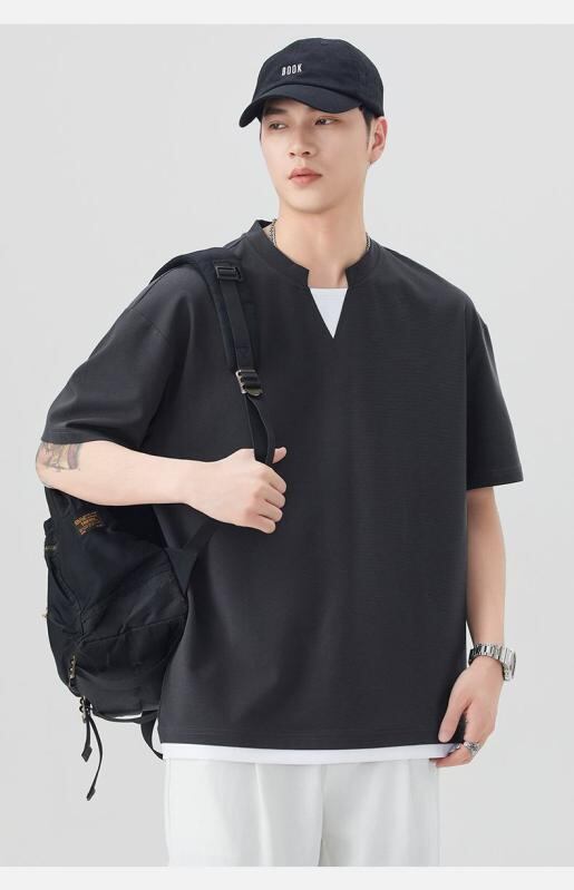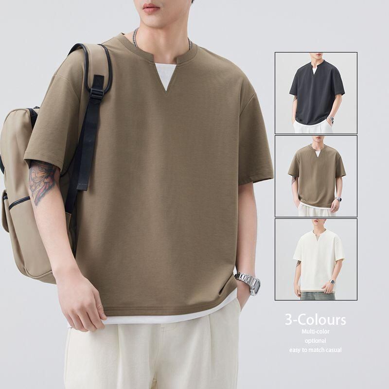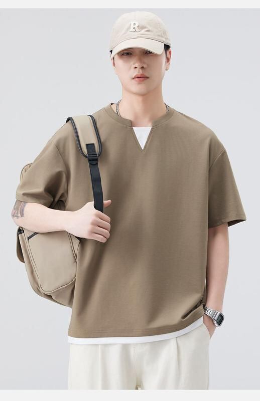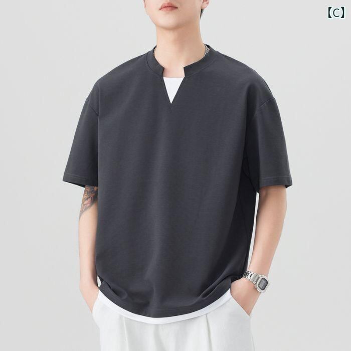 Tシャツ メンズ 半袖 Vネック 接触冷感 シームレス モダール ポリエステル 綿 薄手 通気性 吸湿速乾 防シワ 抗菌防臭 ゆったり リラックスフィット カジュアル 部屋着 普段使い