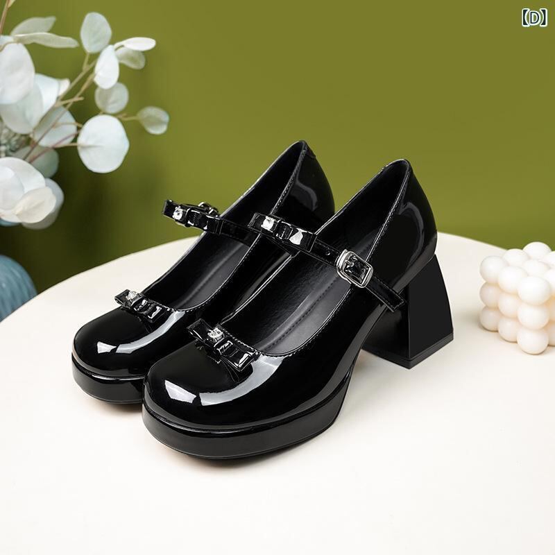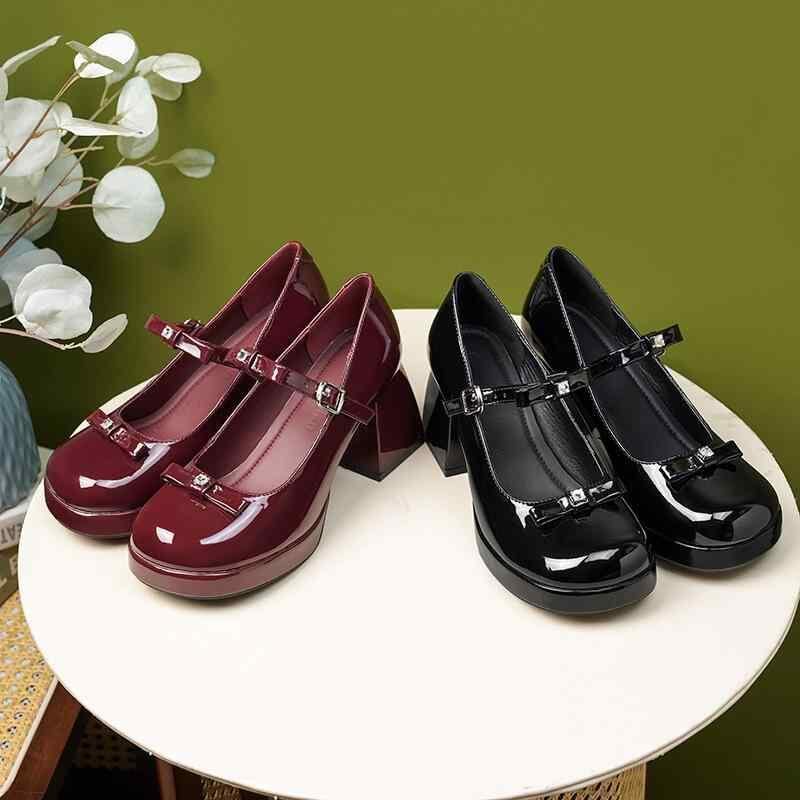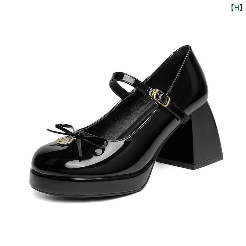 パンプス レディース マリージェーンシューズ 7cmヒール 本革 牛革 ラウンドトゥ 太ヒール リボン フレンチスタイル ロリータスタイル 高級感 上品 疲れにくい 日常使い ブラック ワインレッド アイボリー