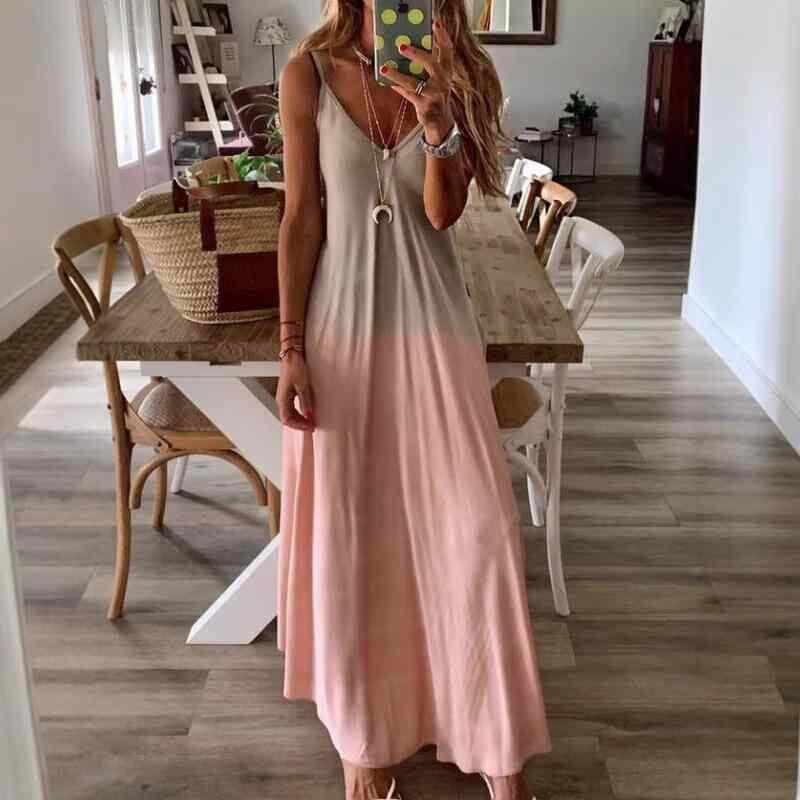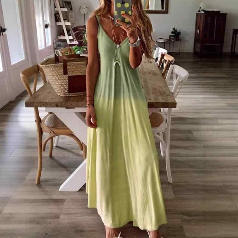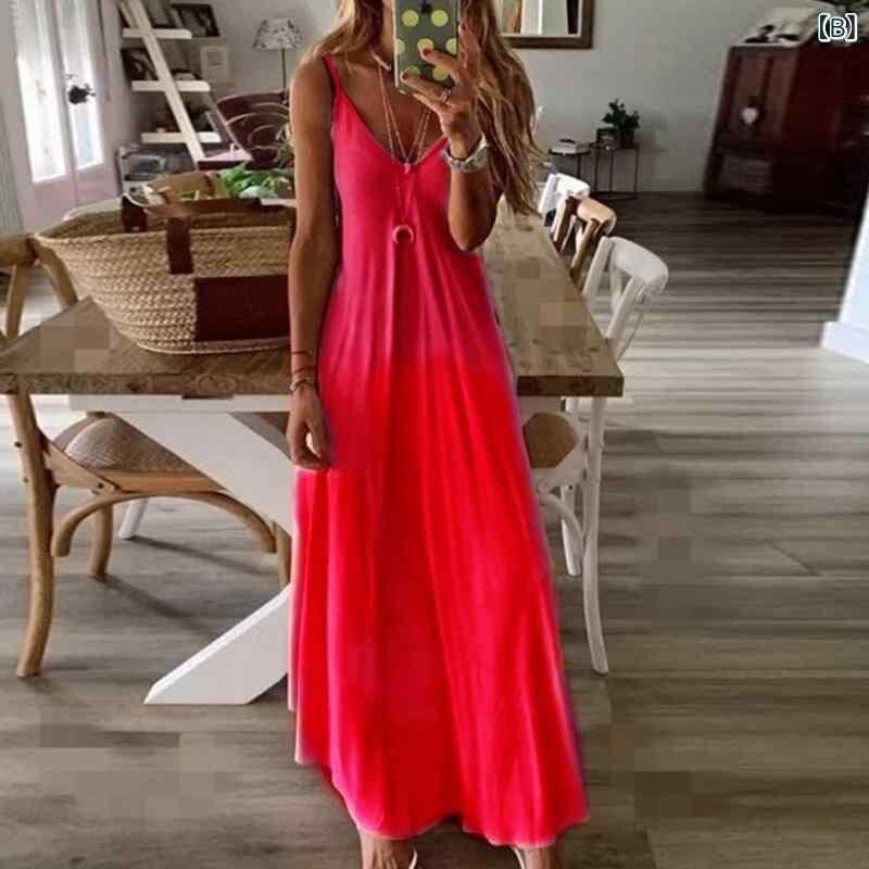 ワンピース レディース 夏用 Vネック Aライン ロング丈 ゆったり 大きいサイズ キャミソールワンピース 再生繊維 ポリエステル 総柄 プリント ハイウエスト 欧米風 リラックスフィット カジュアル