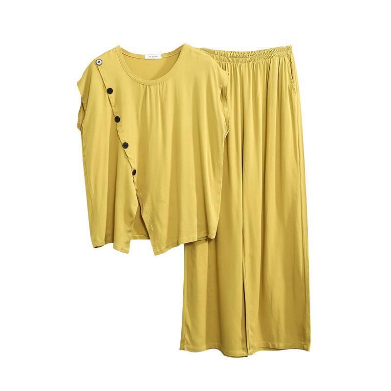 ルームウェア レディース パジャマ セットアップ 上下セット 丸首 再生繊維 レーヨン 薄手 軽量 ゆったり 半袖 ロングパンツ 部屋着 ホームウェア 接触冷感 吸湿速乾 大きいサイズ カジュアル 普段使い
