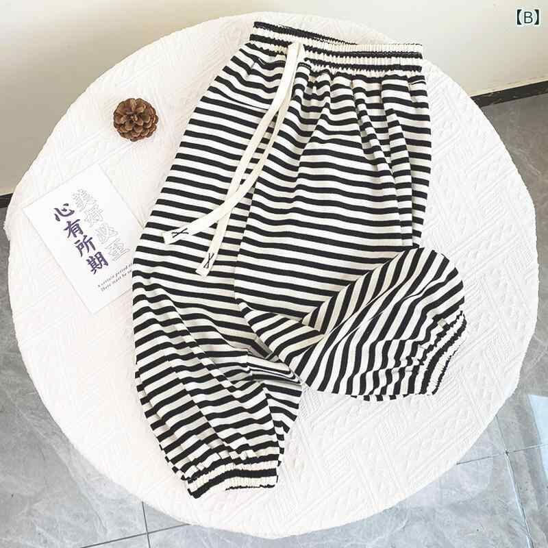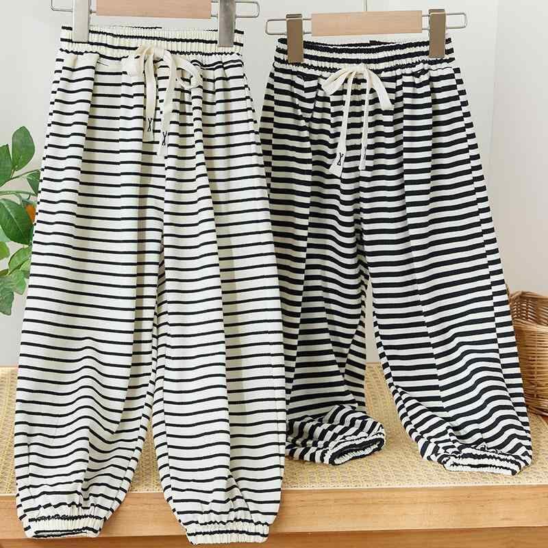 パンツ キッズ 男の子 女の子 子供 夏物 薄手 メッシュ 防蚊パンツ 虫よけ バルーンパンツ サルエルパンツ 通気性 白黒 ストライプ カジュアル ボトムス 綿 普段使い 部屋着