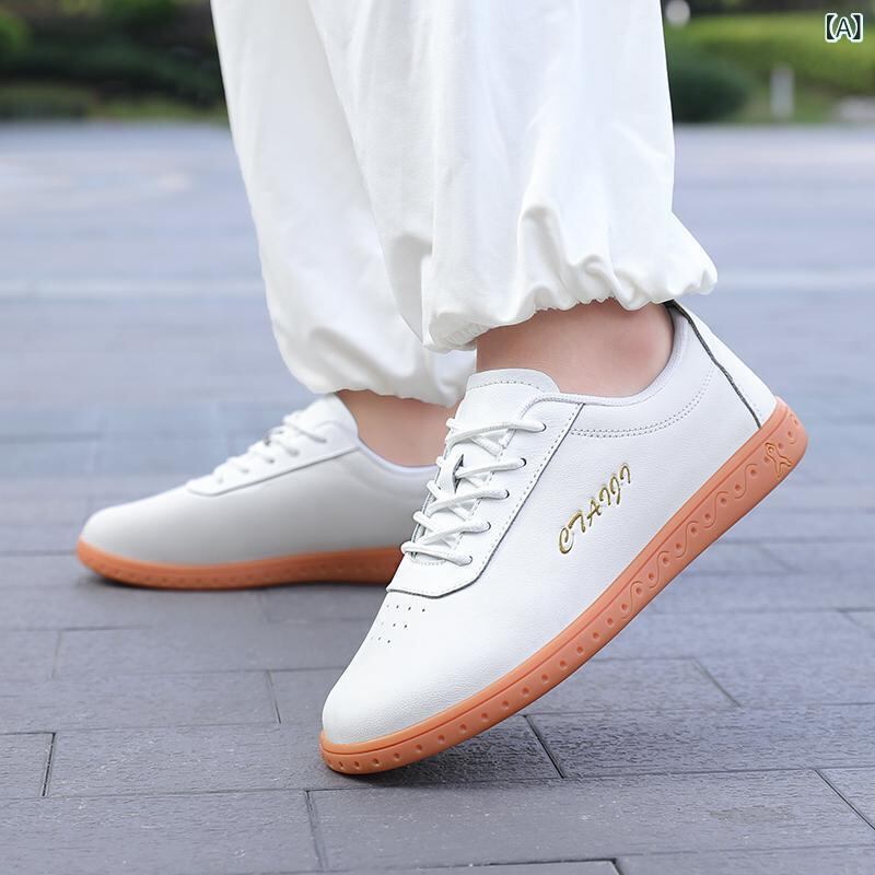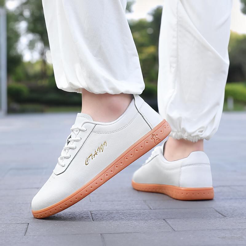 太極拳シューズ 男女兼用 合成皮革 アッパー 牛筋底 防滑 ゴム底 クッション性 柔軟 軽量 武術 練習用 トレーニングシューズ 白 オールシーズン レースアップ 室内 外 兼用 フィットネス