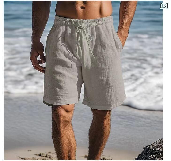 ショートパンツ メンズ 麻混 綿 ウエストゴム ドローストリング カジュアル スポーツ ビーチ 薄手 夏 ストレート イージーケア 五分丈 ホワイト ブラック カーキ