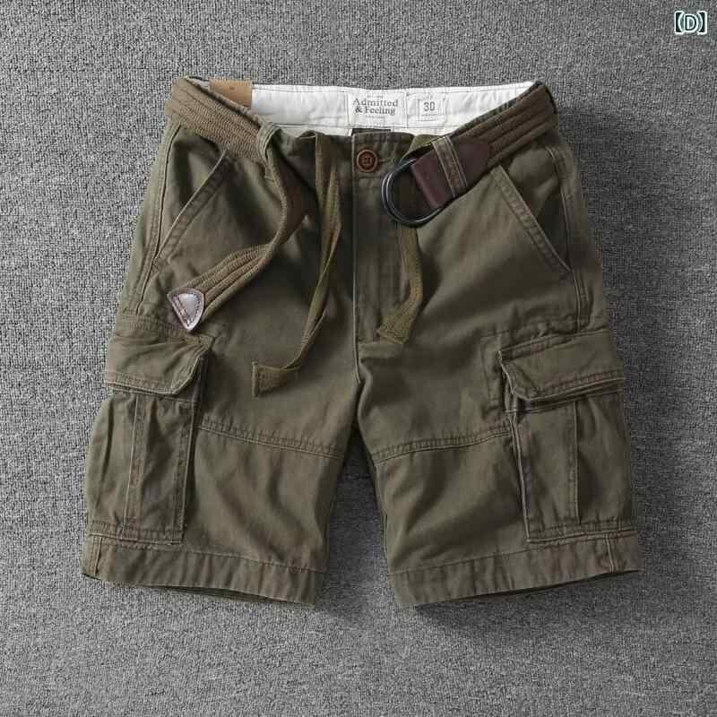 ショートパンツ メンズ トレンド 韓国ファッション カーキグリーン ブラック ホワイト グリーン グレー 迷彩 綿 コットン カーゴパンツ ゆったり ルーズフィット マルチポケット カジュアル 薄手 軽量 普段使い ストリート