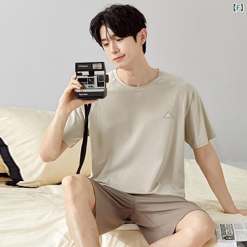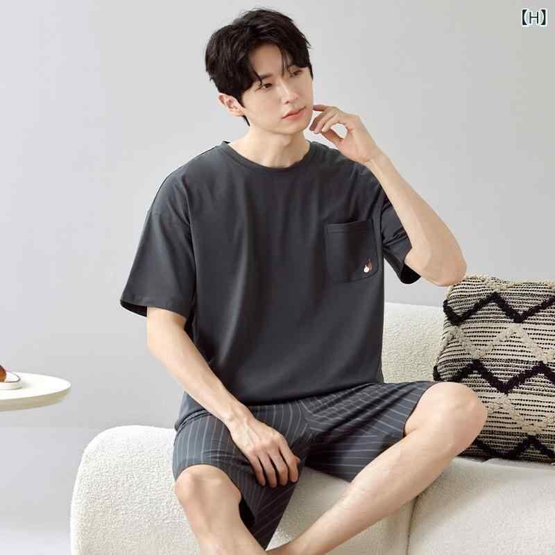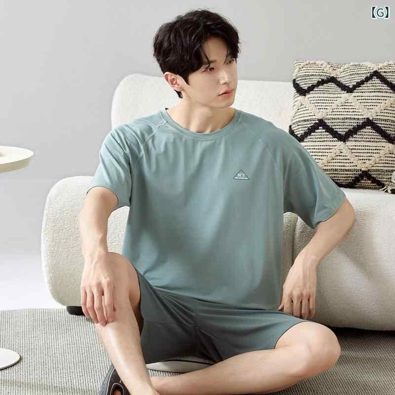 パジャマ メンズ 綿素材 薄手 軽量 春夏 夏用 半袖 クルーネック ショートパンツ セットアップ ルームウェア 部屋着 ワンマイルウェア 外出着 快適 通気性 シンプル カジュアル