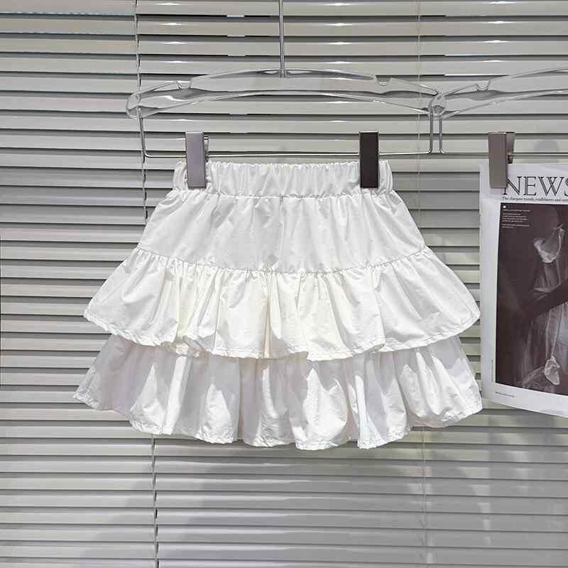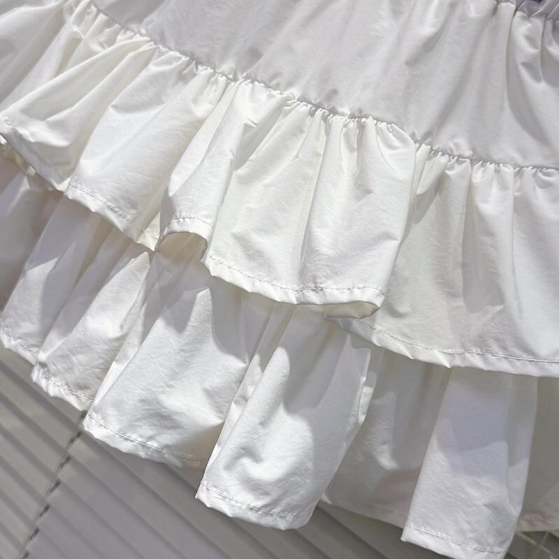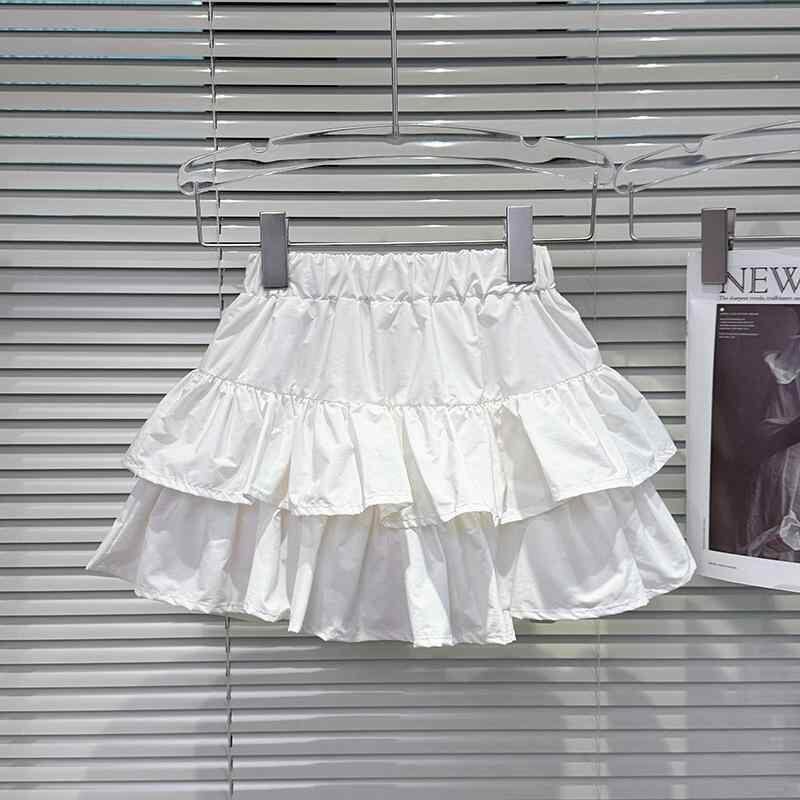 スカート キッズ 女の子 ジュニア Aライン ティアード フリル ミニ丈 ショート丈 ウエストゴム 透け防止 インナーパンツ付き 無地 化繊混紡 アセテート 綿裏地 やわらか素材 夏用 涼しい プリンセス風 かわいい ガーリー フェミニン 白 ホワイト